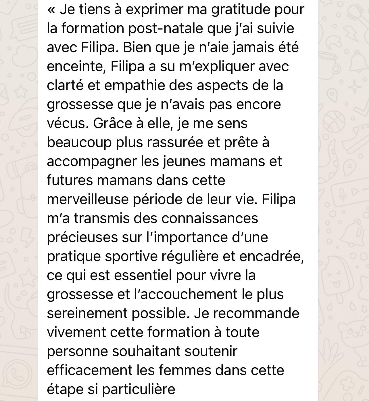 À la fin de la formation je t'offre des vidéos bonus pour que tu puisses aller plus loin dans l'accompagnement de tes clientes enceintes et en post partum.